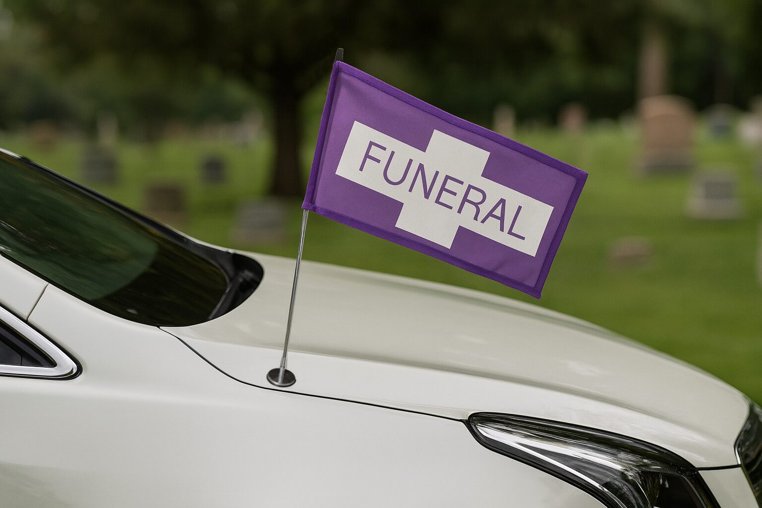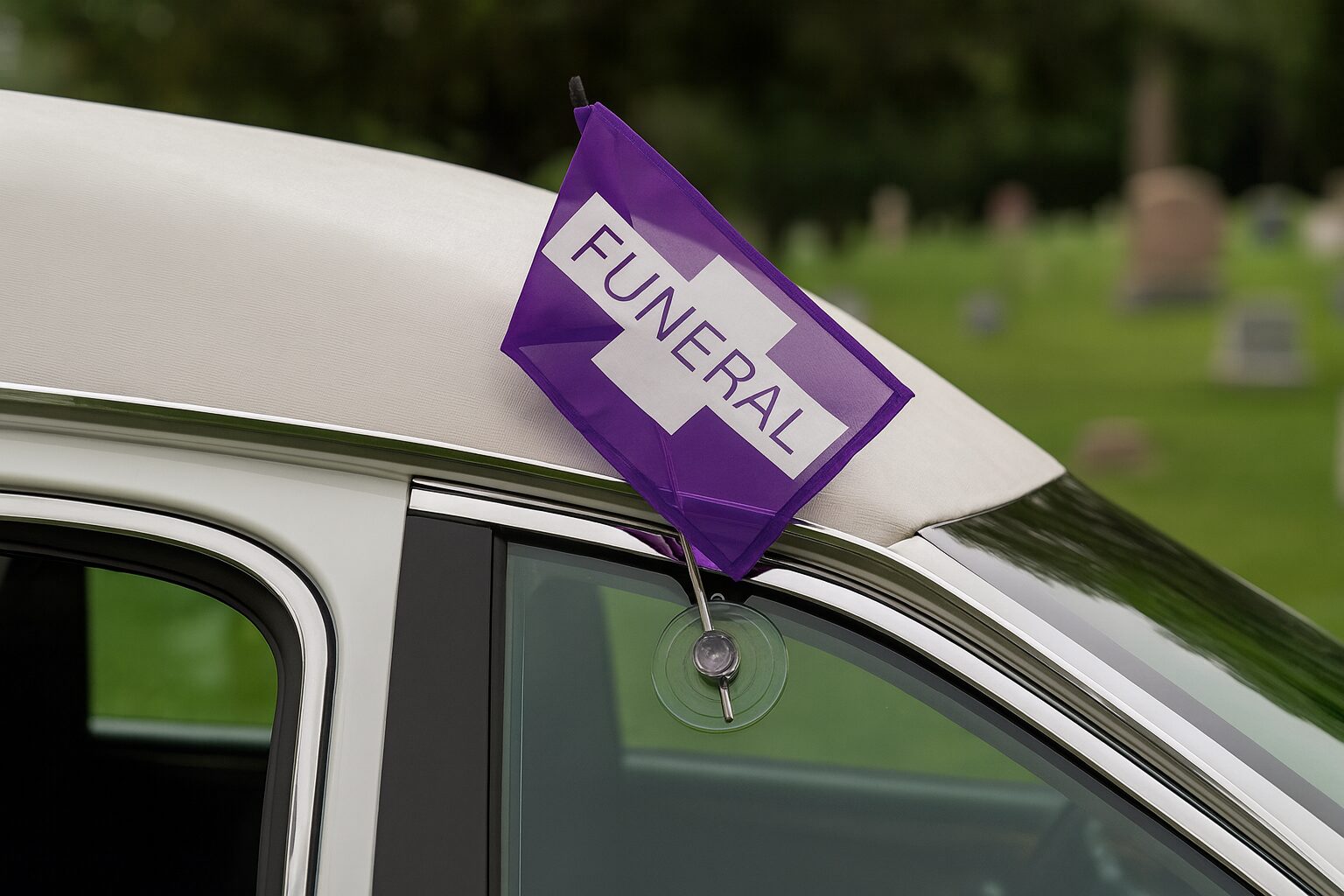 Universal Mount Suction Cup Flagstaff with Purple & White Economical Flag