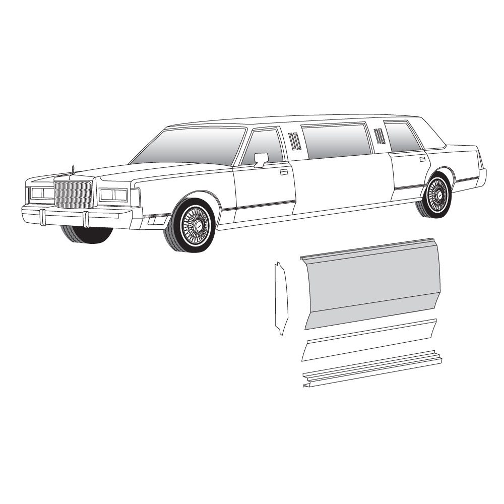 1980-1989 Lincoln Town Car center panel skin. Universal right and left sides. 124″ length. Please contact customer service for a quote.