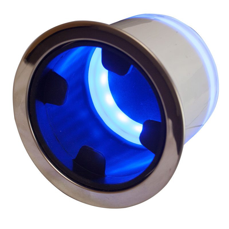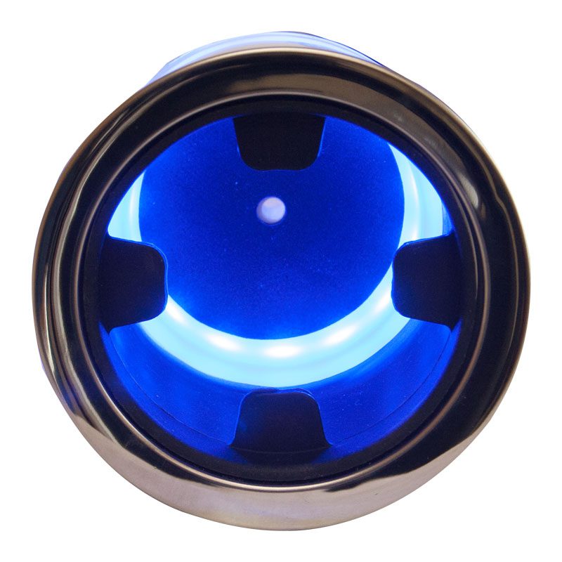 - Blue LED strip illuminates the inside of the cup holder
