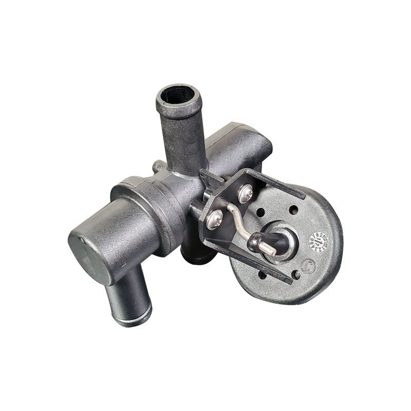 Water flows through the valve in its normally closed position. When vacuum is applied the flow is redirected to flowing through the heater core.