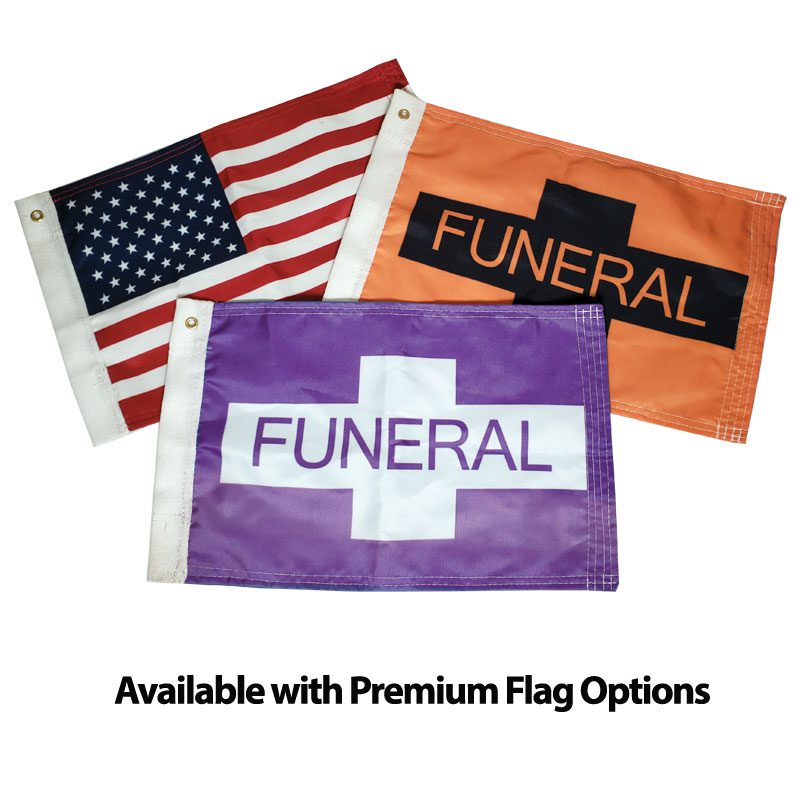 | Flag | Funeral-Orange/Black, Funeral-Orange/White, Funeral-Purple/White, No Flag, USA Flag |