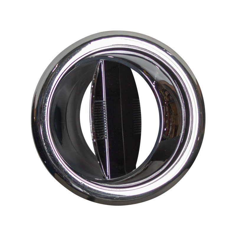 Round vent louver with 2-1/2″ hose adapter size. Available in chrome or black louver.