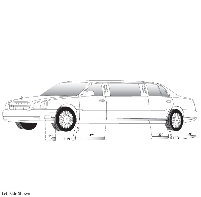2000-2005 Cadillac DeVille stainless steel lower rocker molding sedan kit.