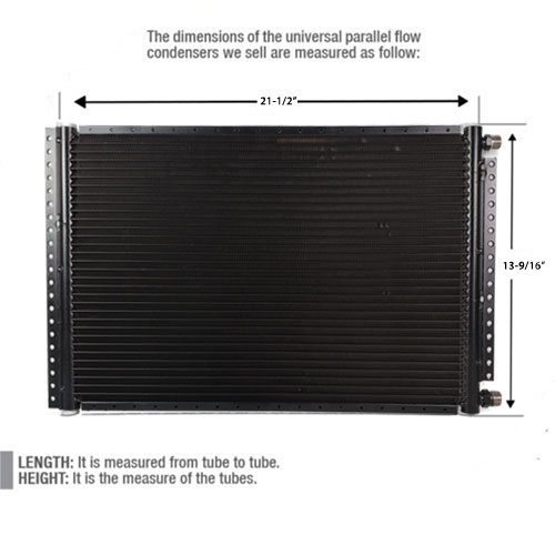 Universal AC Condenser Parallel Flow 21-1/2″ x 13-9/16″ with Male Insert O-ring #6 & #8 fittings.